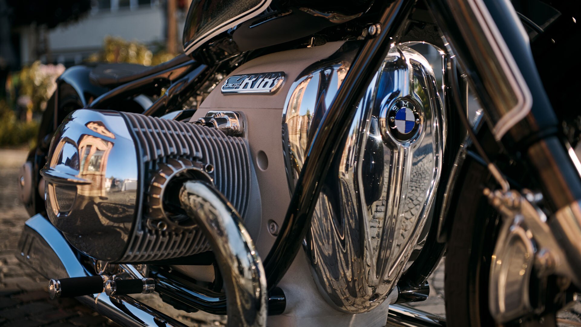 Die Concept R 18 ist offensichtlich eine aufregende Brücke zwischen dem oben genannten „Hommage“-Bike und dem zukünftig in Serie gefertigten Motorrad und zeichnet sich gleichermaßen durch Präsenz, Attitüde und Verheißung aus. Der Schwerpunkt liegt zweifellos auf dem riesigen Boxermotor, dessen Abmessungen sehr viel größer sind als die der 500-ccm-Version, die in dem Hommage-Showbike zum Einsatz kam, und der speziell dafür entwickelt wurde, ein echtes Statement zu setzen. Die charaktervollen Speichenräder (vorne 21" und hinten 18") entsprechen den beträchtlichen Proportionen, und die Haltung insgesamt des neuesten Showbikes strahlt Attitüde und Präsenz aus. Der modifizierte Vorderbau und der Fishtail-Auspuff tragen zum maßgeschneiderten, handgefertigten Eindruck bei.